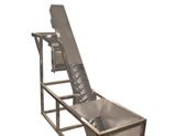La glace est automatiquement chargée dans le bac à glace puis envoyée à la section de pesage par convoyeur. Cette section est très basse, juste à la hauteur de la sortie de glace de la machine à glaçon de façon à bien redevoir la production de glace.