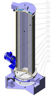 Comme montré ci-dessus, le système de réfrigération commence à fonctionner quand l'eau du réservoir inférieur est transportée jusqu’au réservoir supérieure depuis la sortie d'eau jusqu’à l'entrée d'eau par la pompe à eau. Ensuite, l'eau pénètre dans le tuyau de distribution, elle s'écoule en spirale vers le bas le long des parois du tube de transfert thermique. L'eau commence à refroidir à l’intérieur du tube au contact du réfrigérant, dont la température est basse. Une partie de l’eau est transformée en tube de glace, tandis que l'eau qui ne se congèle pas retourne au réservoir inferieur. L'eau demeure en circulation de sorte que le tube de glace s’épaississe et que le creux intérieur du tube se réduise de plus en plus