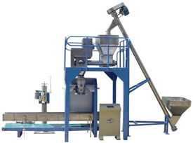 La section de pesage est combinée avec la section de remplissage. Elle contient une cellule de chargement, une agrafeuse de sac et un extracteur de poussière. Un employé doit mettre les sacs dans la section de pesage puis les fermer à la scelleuse.